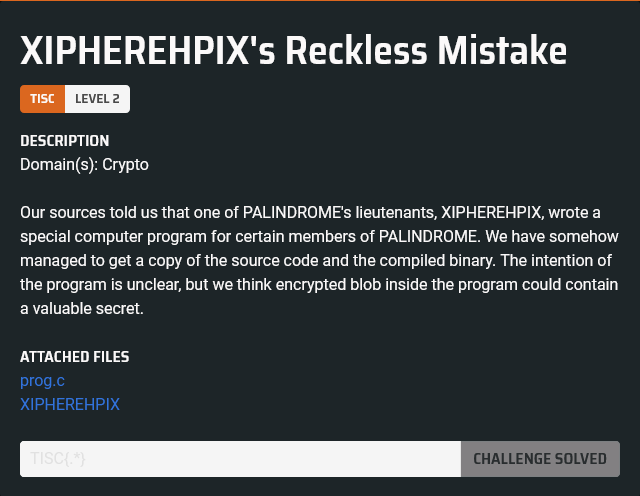 TISC is a CTF organised by Singapore’s CSIT, which is a government organisation whose business it is to organise interesting CTFs.